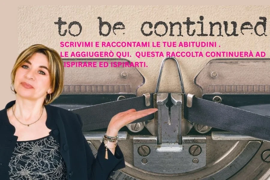 Hai qualcosa da aggiungere scrivimi su messanger e indicami la tua abitudine che vorresti consigliare. la pubblicherò qui e potrai ispirare el tempo…
